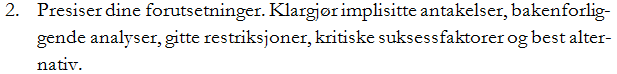 Opplistingen nedenfor og avsnittet deretter er i tråd med punkt 2 i stikkordlisten: